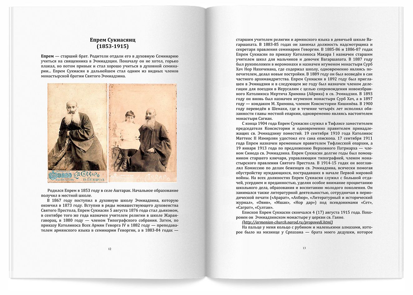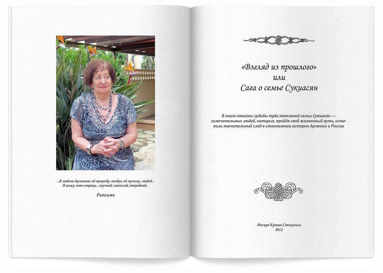 Феликс Татарских, полковник в отставкеСпасибо большое за издание книги о моей армянской семье, о моих предках! Получилось восхитительно! Даже старые фотографии из семейного архива получились очень здорово. А сотрудничать с вами так приятно и удобно (сроки соблюдаете, все такие вежливые и позитивные, все подробно рассказываете). Рада, что смогла вас найти.